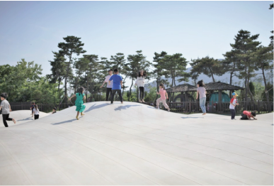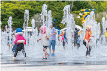 단번에 뜨거운 열을 식히는 데에는 바닥분수 만한 게 없죠. 뜨거운 여름날 분수 사이를 뛰어다니기만 더위가 싹 물러갈 것 같습니다.