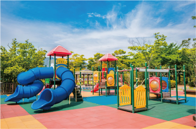 바운싱돔이 있는 포니랜드에는 어린이 놀이터와 인조잔디 축구장과에서의 놀이도 가능해요!