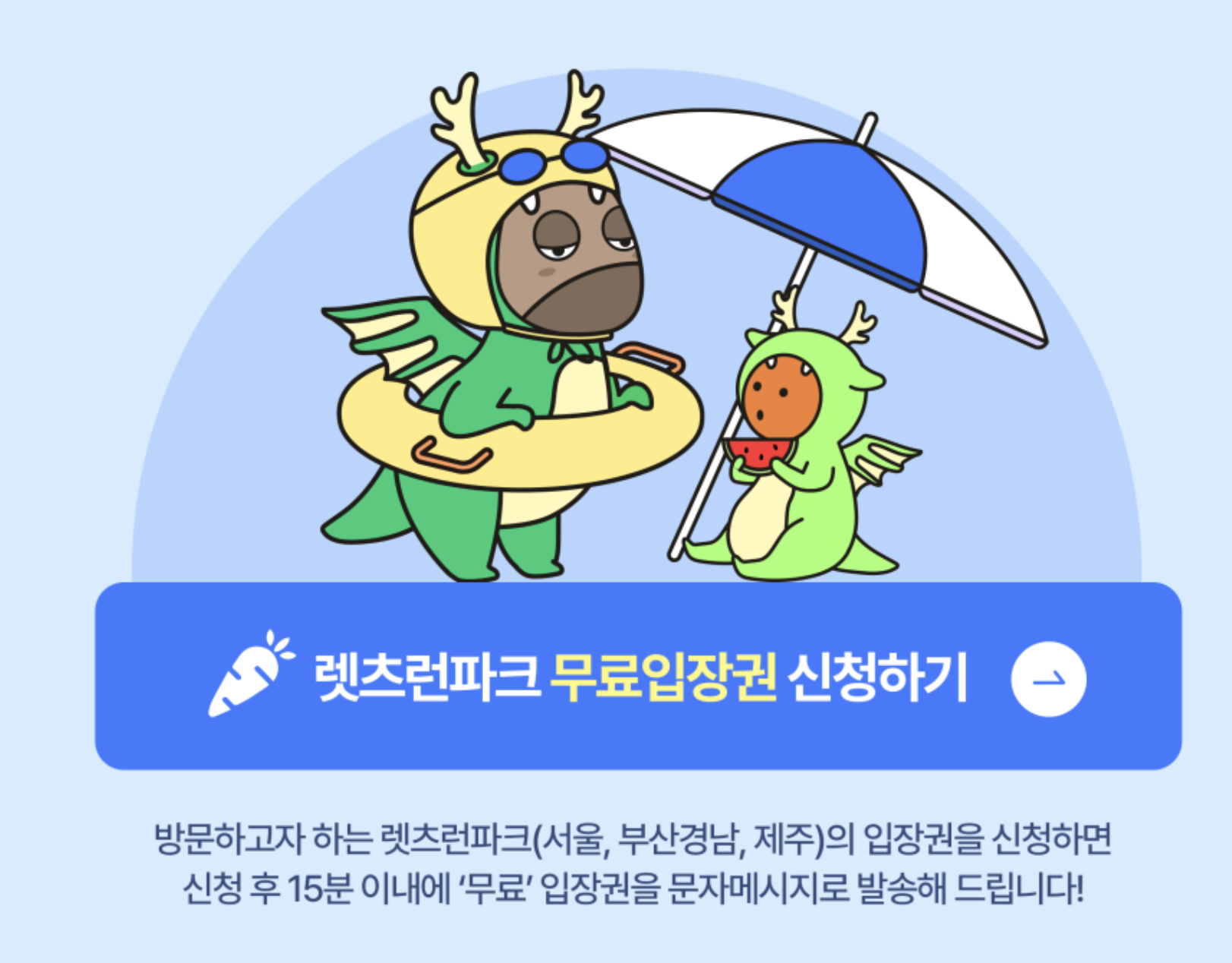 * 하단에 버튼을 확인하시고 문자 보내시면 렛츠런 파크 무료 입장권 받으실 수 있습니다.(성인만 받을 수 있습니다.)