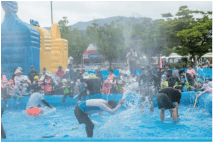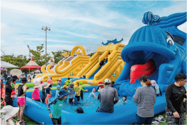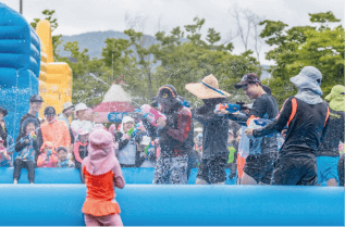 블루밍 워터페스티벌의 가장 큰 장점은 다양한 연령층이 즐길 수 있는 놀이기구와 이벤트가 제공된다는 점입니다. 어린이들은 워터풀과 작 은 슬라이드를, 어른들은 대형 슬라이드와 물총싸움을 즐길 수 있어 모두가 만족할 수 있습니다. 또한, 현장 안전 요원들이 배치되어 있어 안심하고 물놀이를 즐길 수 있습니다.