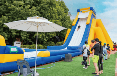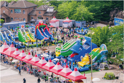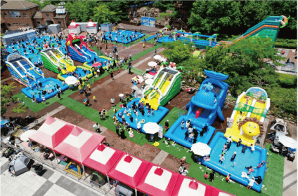 한 번에 80명까지 이용 가능한 점핑 기구! 특수 재질의 고무 놀이터 위에서 맘껏 뛰어놀 수 있는 바운싱돔은 넘어져도 ok! 가격도 Free! 키 100cm 이상인 초등학생 이하 어린이들의 에너지를 마구마구 뿜어낼 수 있는 바운싱돔에서 아이들의 꿈과 희망이 하늘까지 닿길 바랍니다.