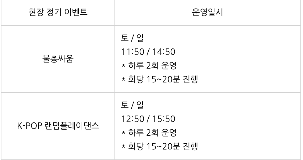 추가로 K-POP 랜덤플레이댄스 이벤트도 진행하고 있으니 위의 운영 시간을 확인해 주세요.