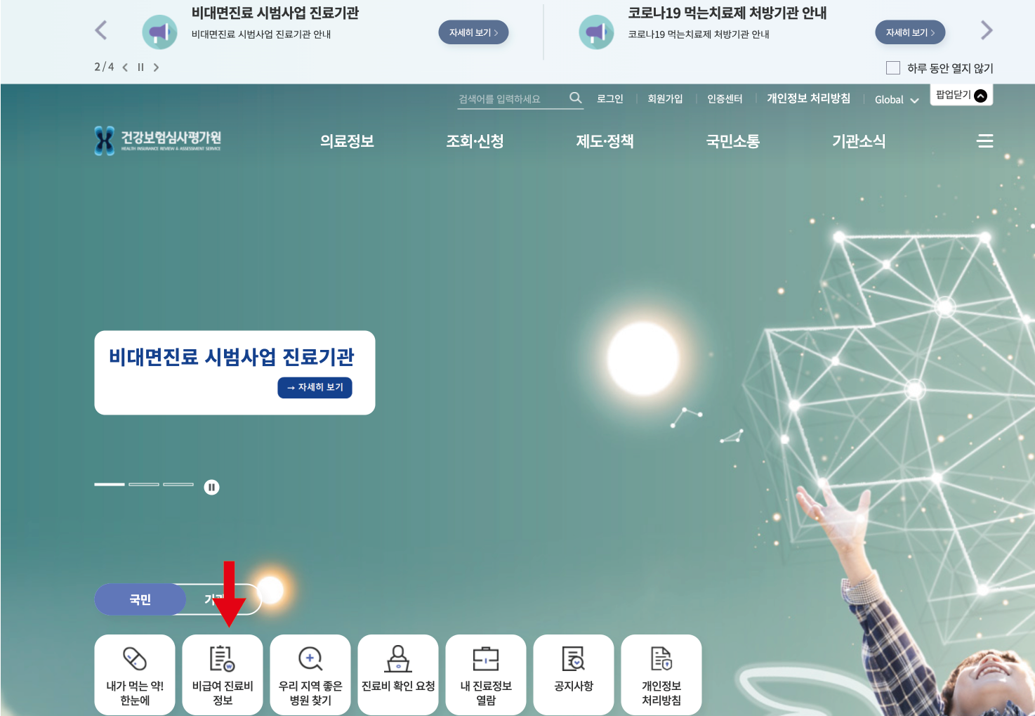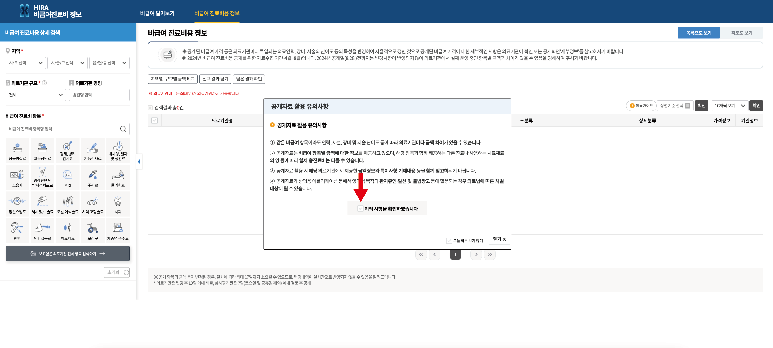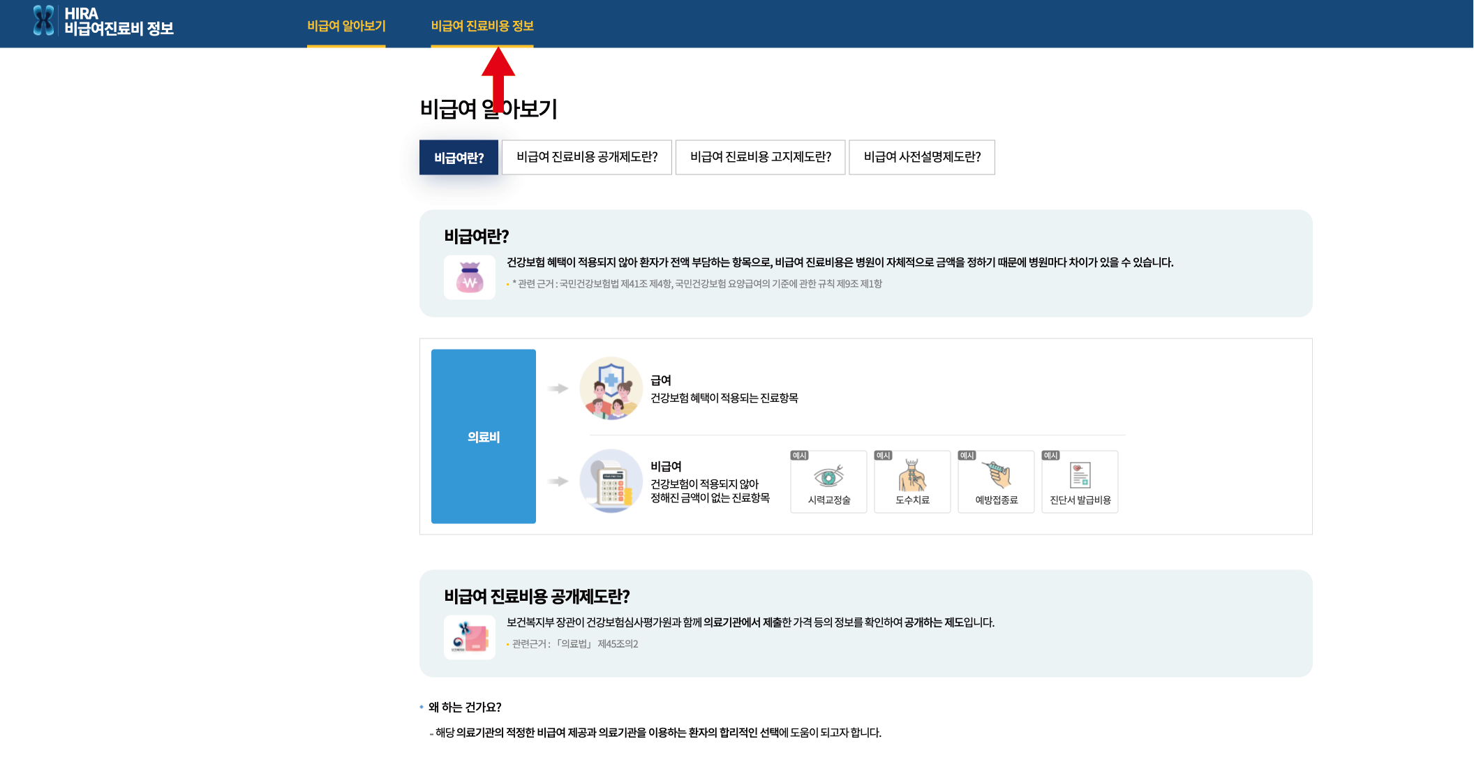 - 다음 화면에서 비급여 진료비용 정보 클릭