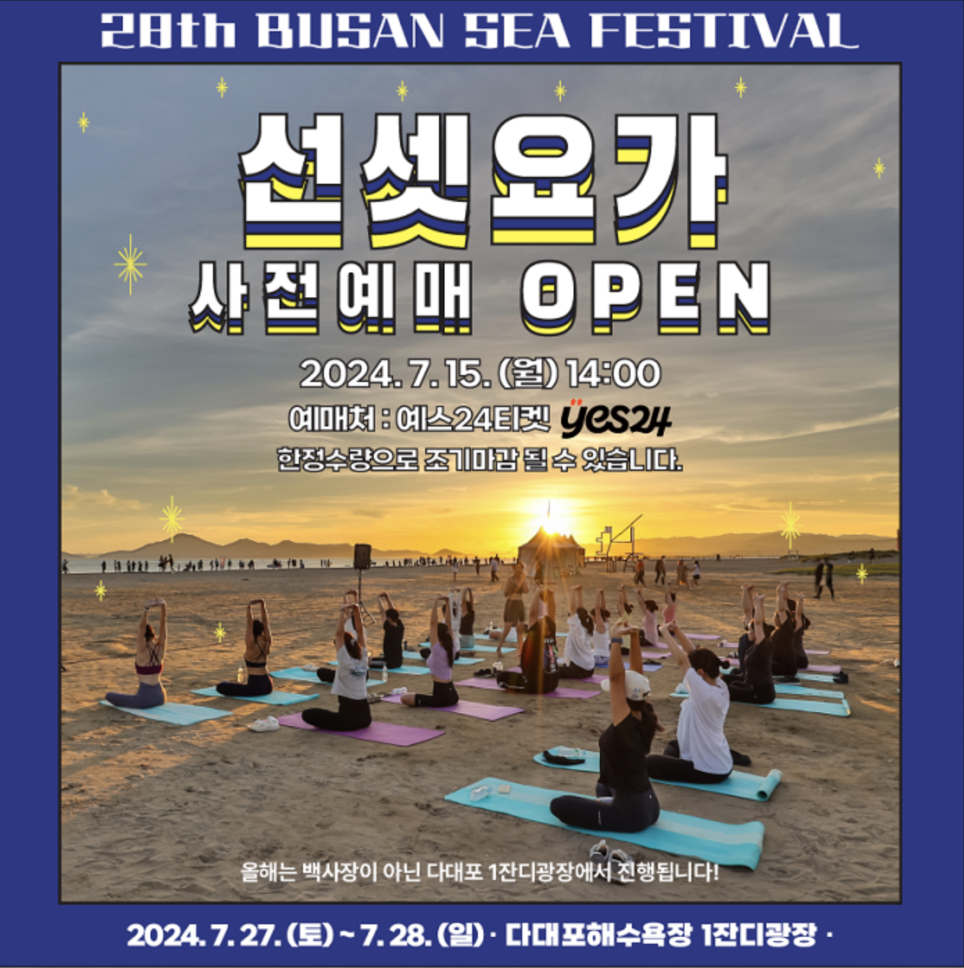 2024.7.27. (토)~ 7.28. (일) • 다대포해수욕장 1잔디광장에서 진행하는 선셋요가 입니다.