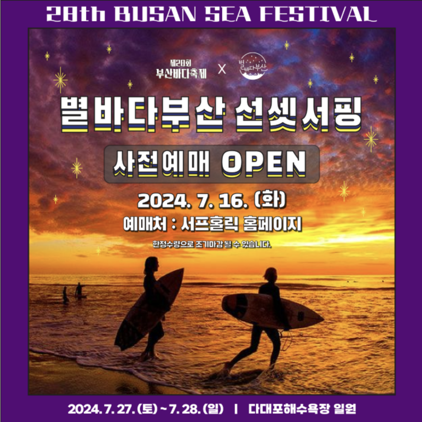2024.7.27. (토)~7.28. (일) 다대포해수욕장 에서 진행하는 선셋 서핑 입니다.