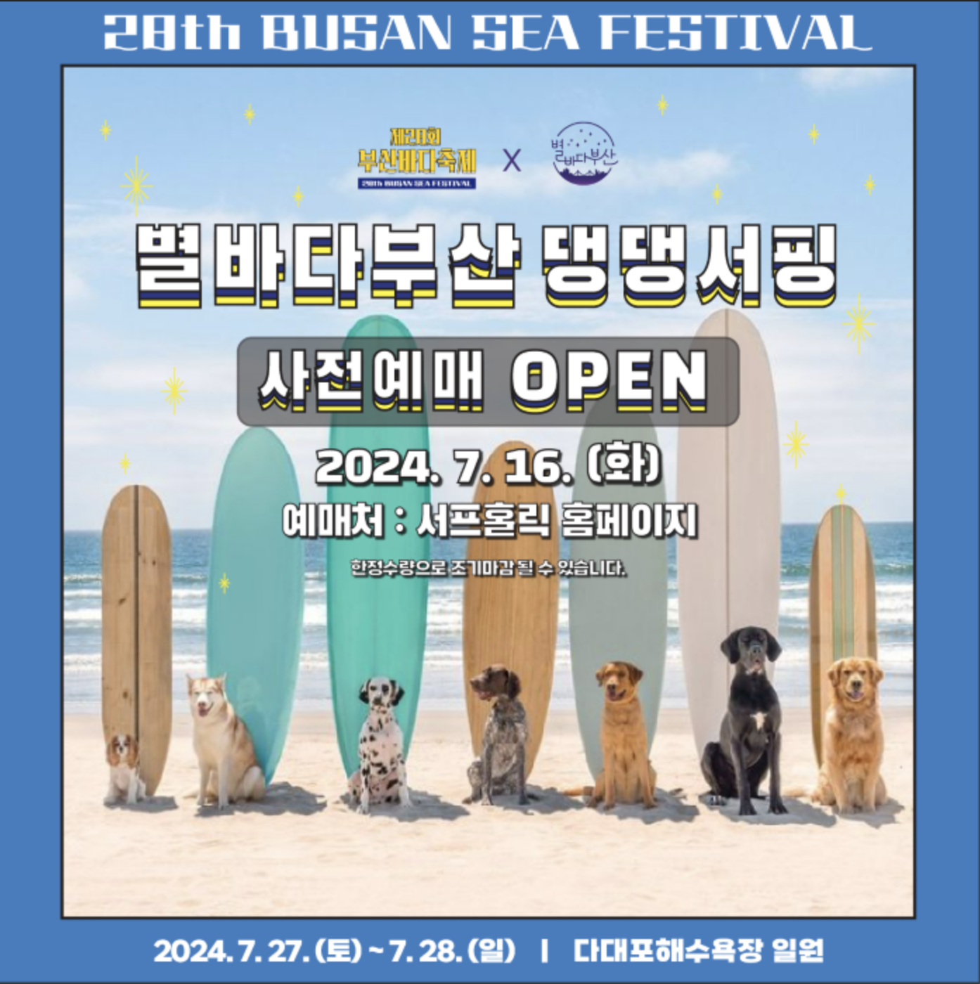 2024.7.27. (토)~7.28. (일) 다대포해수욕장 에서 진행하는 댕댕서핑 입니다.