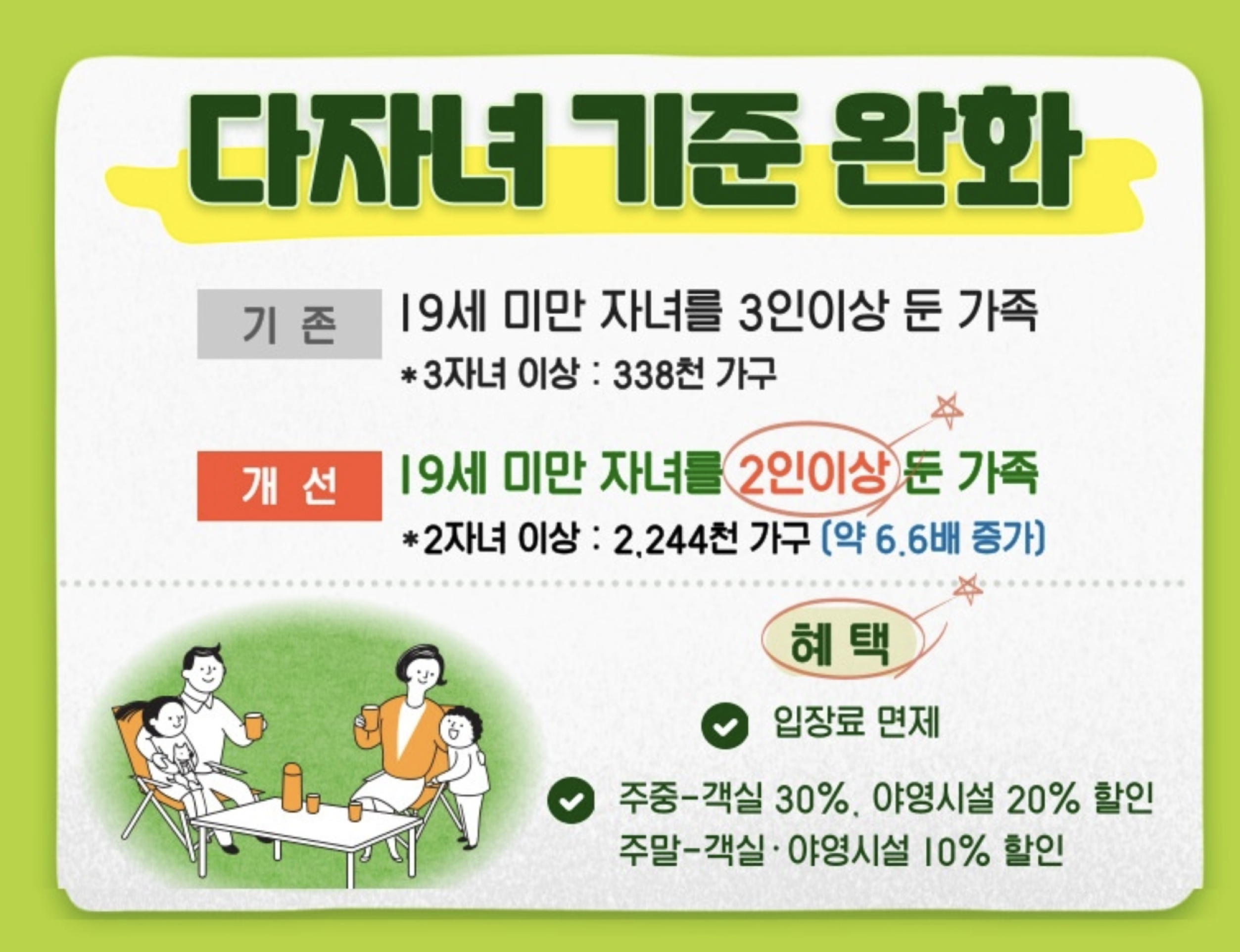 - 다자녀 우선예약 추첨제: 2인 이상의 자녀가 모두 19세 미만인 가구