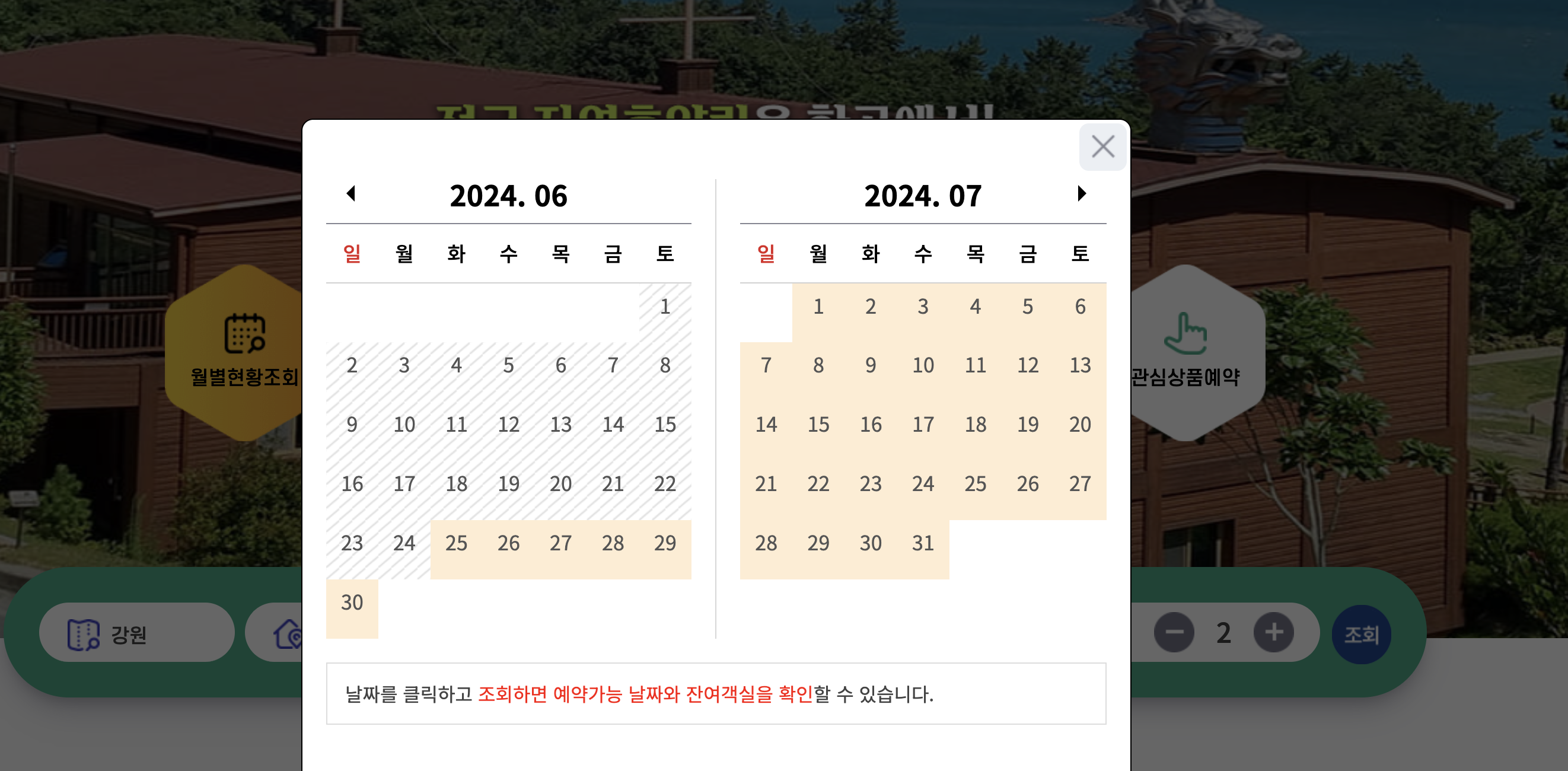 - 날짜 선택 시 예약이 가능한 날짜만 색상 표시가 되어 있습니다.