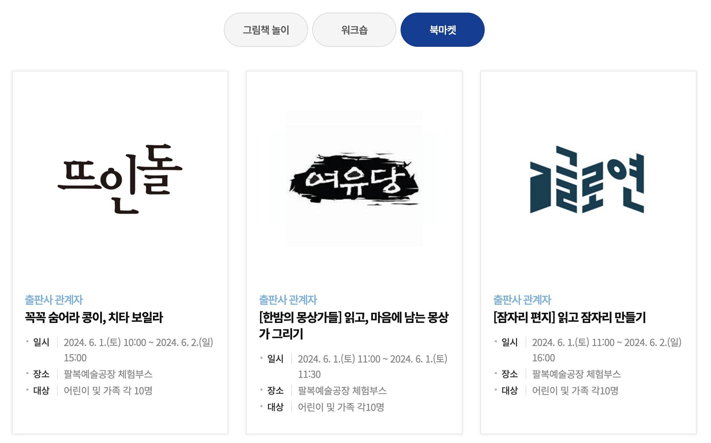 - 장소 : 팔복예술공장•전주시립도서관•지역서점