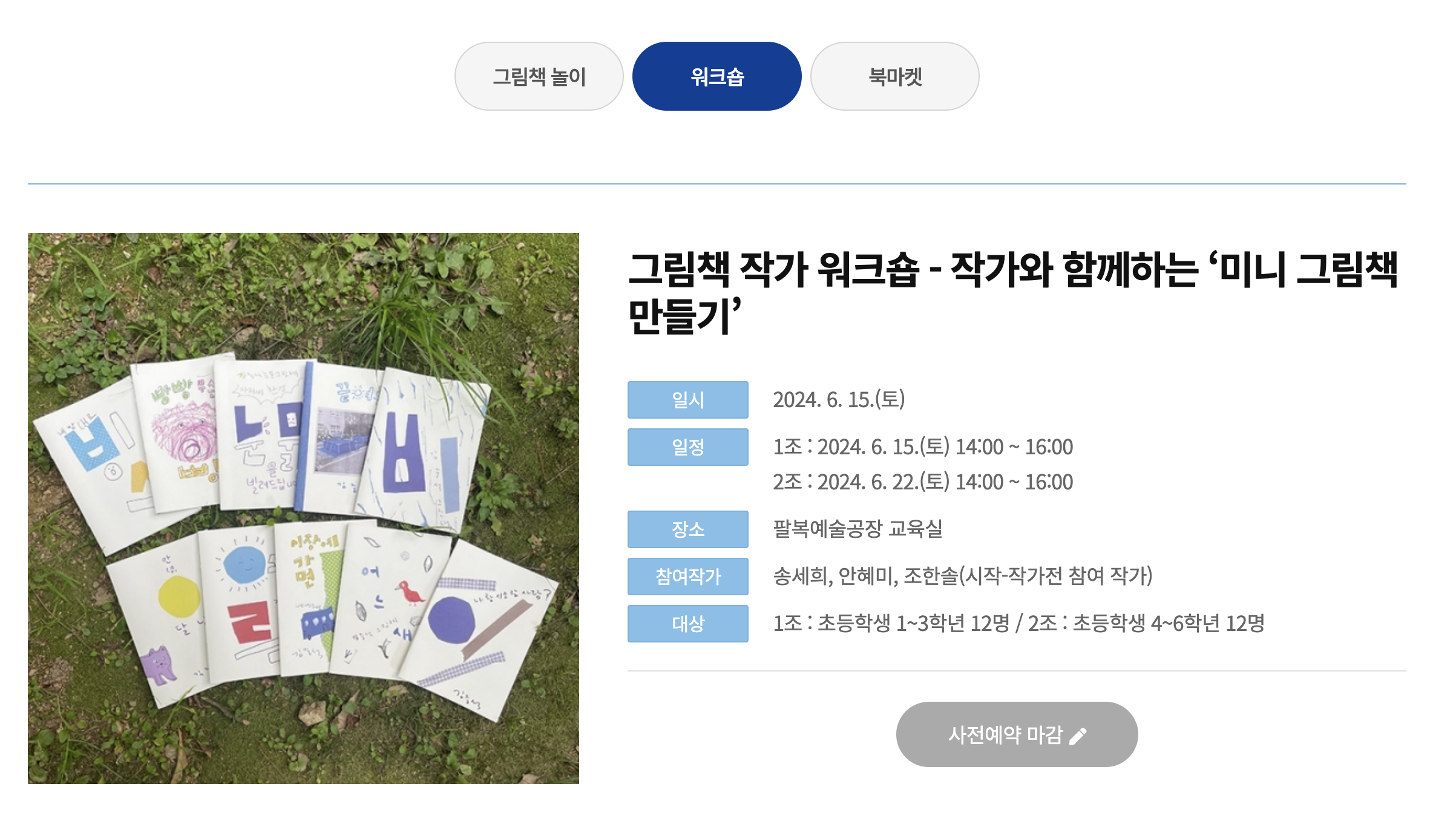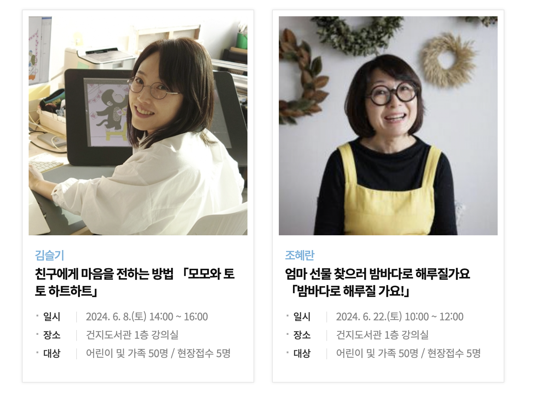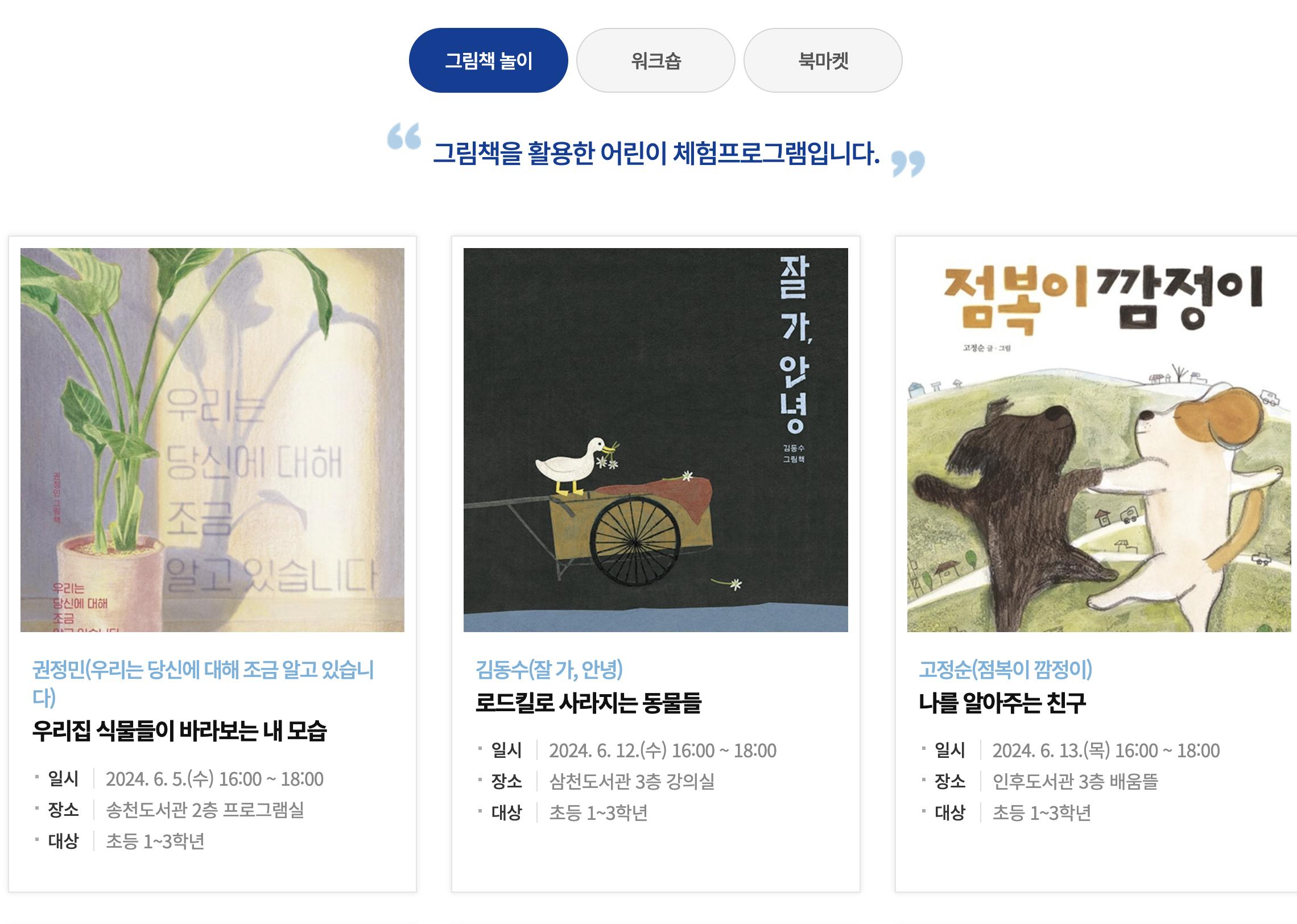 - 체험 : 강연 작가의 그림책을 활용한 체험 프로그램