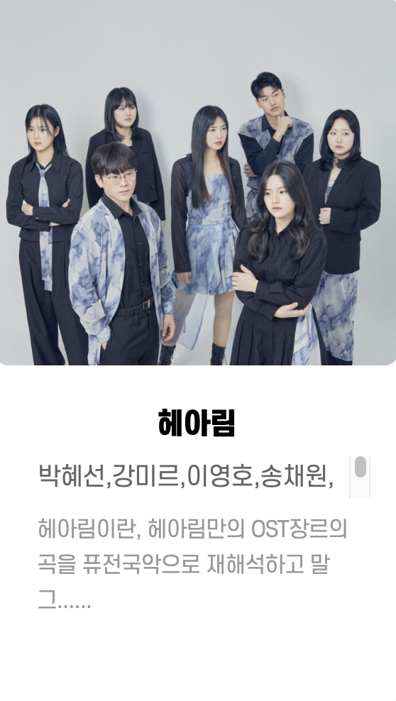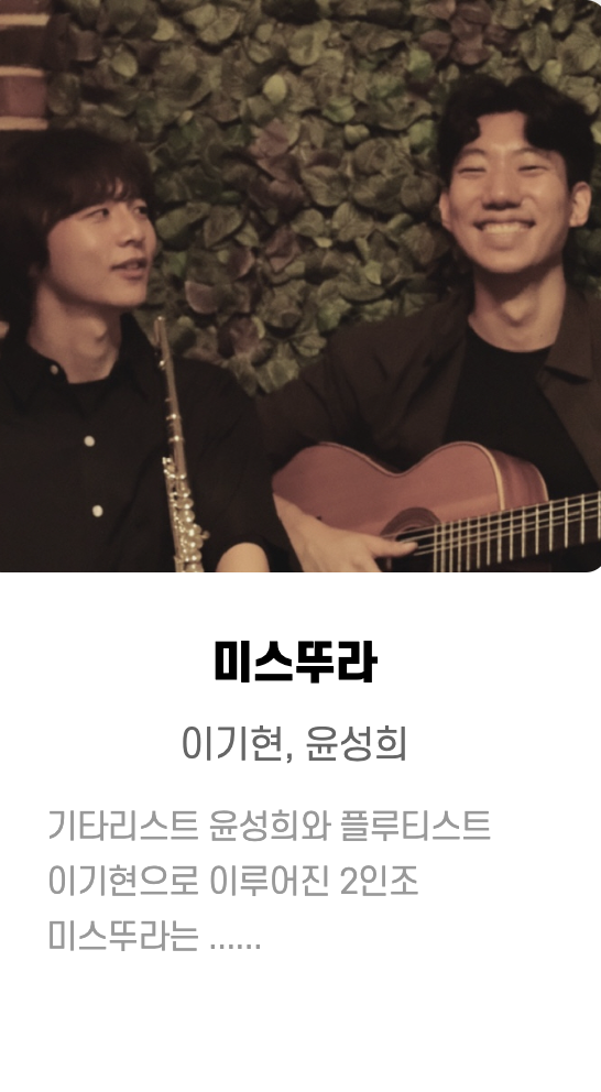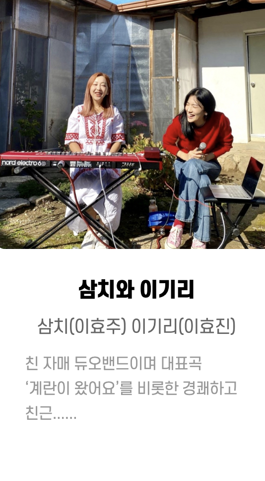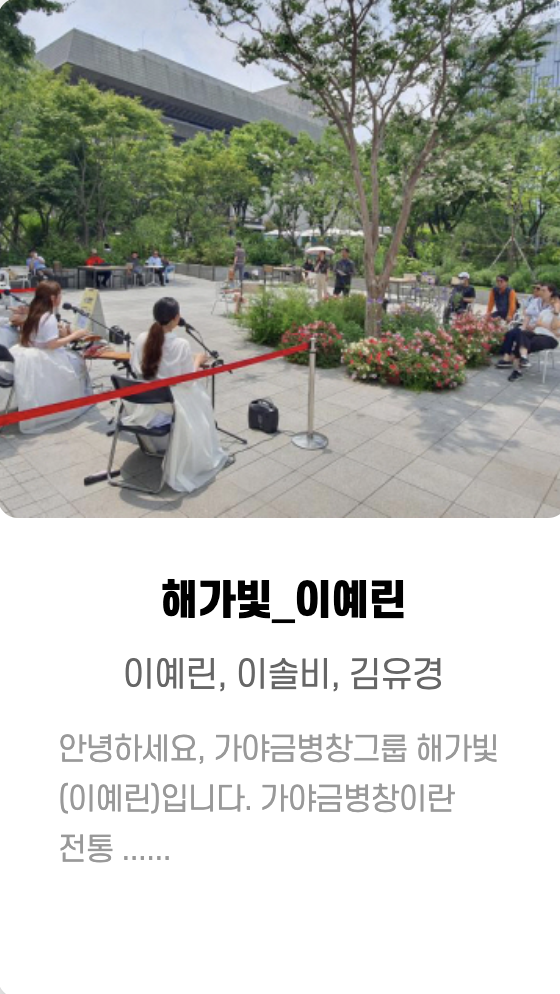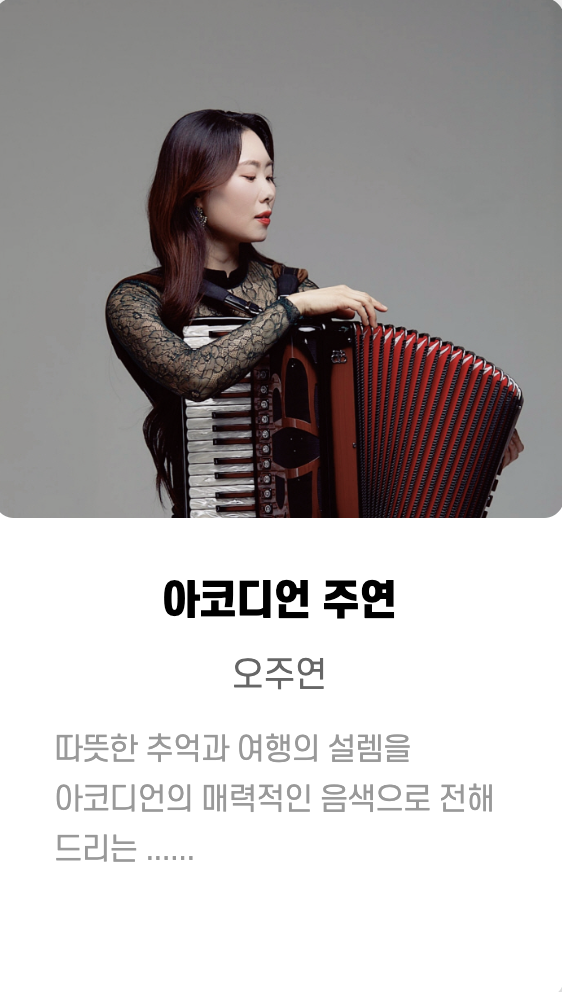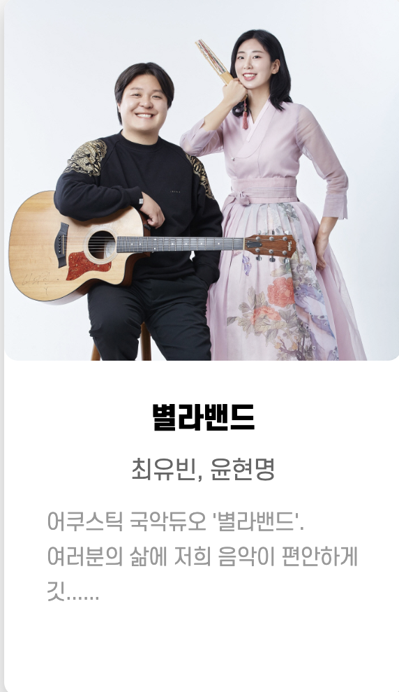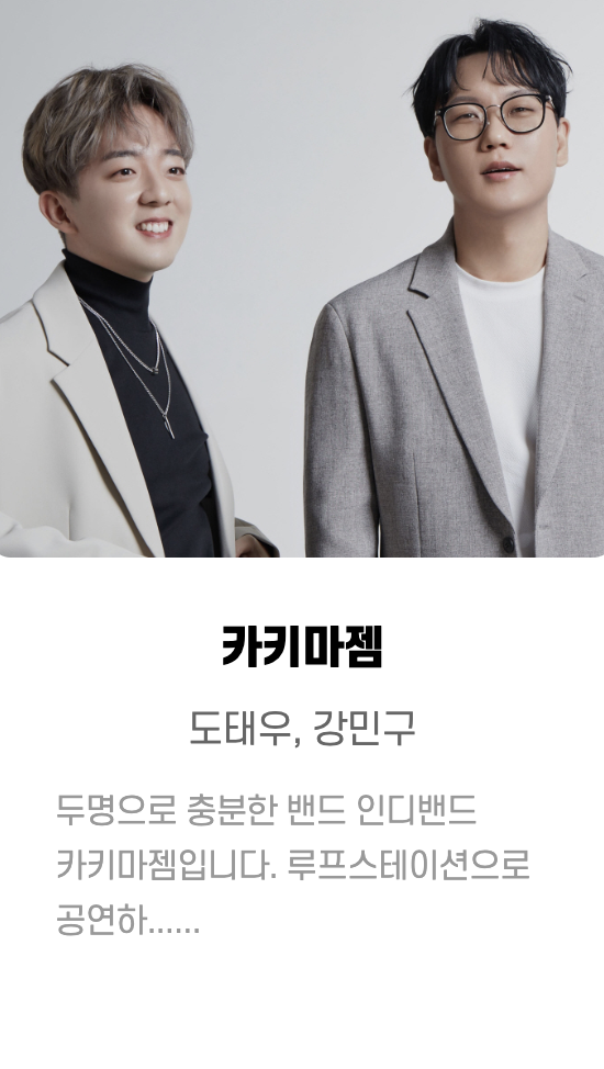 원화, Bann ,은호수 ㅡ핫클럽디코리아(Hot Club De Korea) ,해가빛_이예린 ,마술사 문시호 ,RJ(김창경) ,최기타 ,김유정 ,이상한 댄스 컴퍼니 ,리온 ,헤아림 ,오시오핸드팬 ,섬과도시 ,실크앙상블 ,홍희선 ,실버레인 ,고양이 용사 ,매직컬댄서새봄 ,김성률 ,매직유랑단 ,민송 ,청춘유수 ,제이티마술단 ,김재현 ,김동환 ,권진수 등등... 많은 가수 들이 참여했습니다.