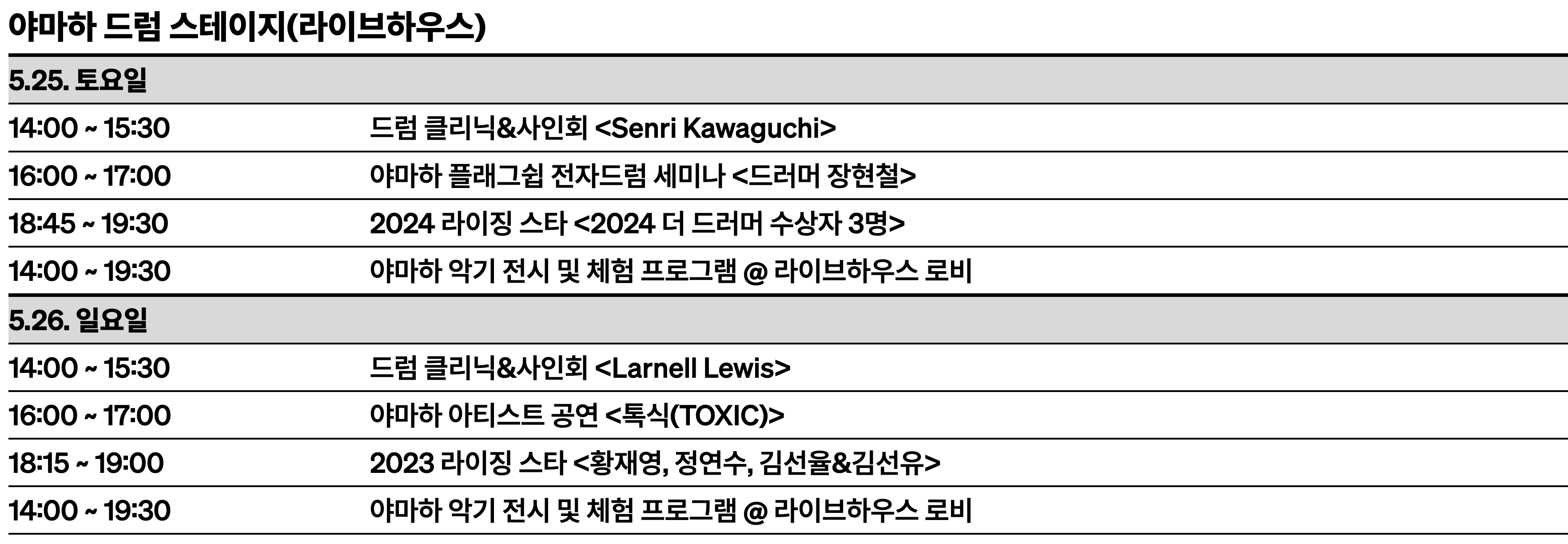 행사 기간 2024년 5월 25일(토)- 5월 26일(일)