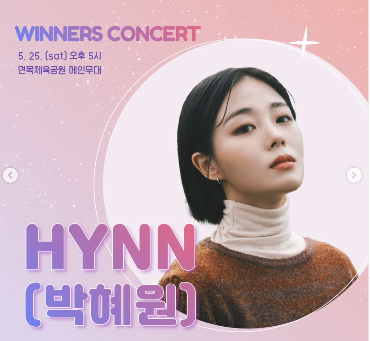 5/25(토) 5pm 겸재장미가든(면목체육 공원) 메인무대 - HYNN(박혜원), 강진